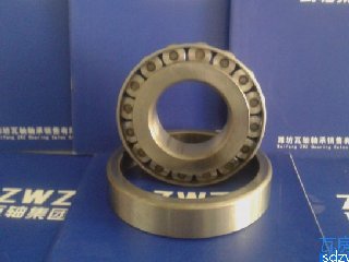 圓錐滾子軸承的內、外圈具有錐形滾道,滾道之間裝有錐形滾子。若將錐形面延伸,最終會聚于軸承軸線上一點。圓錐滾子軸承主要用于承受以徑向載荷為主的徑向,軸向聯合載荷。軸承的軸向承載能力由接觸角決定,越大,軸向承載能力越大.圓錐滾子軸承為分離型軸承,帶滾子和保持架的內圈構成內組件,能與外圈分開安裝。 該類軸承主要用途:汽車前輪、后輪、變速器、差速器、小齒輪軸,機床主軸,建筑機械,大型農業機械,鐵路車輛齒輪減速裝置,軋鋼機輥頸小減速裝置。