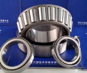 圓錐滾子軸承的內、外圈具有錐形滾道,滾道之間裝有錐形滾子。若將錐形面延伸,最終會聚于軸承軸線上一點。圓錐滾子軸承主要用于承受以徑向載荷為主的徑向,軸向聯合載荷。軸承的軸向承載能力由接觸角決定,越大,軸向承載能力越大.圓錐滾子軸承為分離型軸承,帶滾子和保持架的內圈構成內組件,能與外圈分開安裝。 該類軸承主要用途:汽車前輪、后輪、變速器、差速器、小齒輪軸,機床主軸,建筑機械,大型農業機械,鐵路車輛齒輪減速裝置,軋鋼機輥頸小減速裝置。