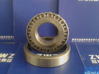圓錐滾子軸承的內、外圈具有錐形滾道,滾道之間裝有錐形滾子。若將錐形面延伸,最終會聚于軸承軸線上一點。圓錐滾子軸承主要用于承受以徑向載荷為主的徑向,軸向聯合載荷。軸承的軸向承載能力由接觸角決定,越大,軸向承載能力越大.圓錐滾子軸承為分離型軸承,帶滾子和保持架的內圈構成內組件,能與外圈分開安裝。 該類軸承主要用途:汽車前輪、后輪、變速器、差速器、小齒輪軸,機床主軸,建筑機械,大型農業機械,鐵路車輛齒輪減速裝置,軋鋼機輥頸小減速裝置。